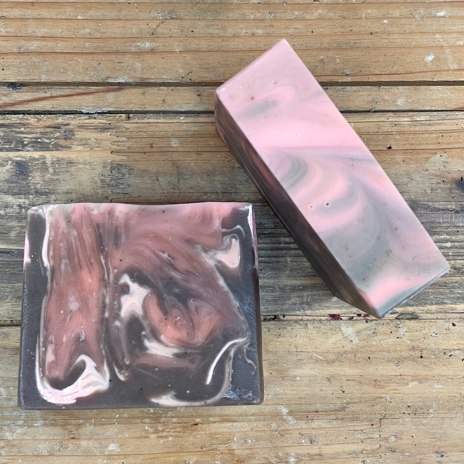 Ingredients: Saponified (Organic) Olive Oil, (Organic) Coconut Oil, (Organic) Coconut Milk, (Organic & Fair Trade) Shea Butter, (Organic & Fair Trade) Cocoa Butter, (Organic) Sunflower Seed Oil, Essential Oils, Mica, Love