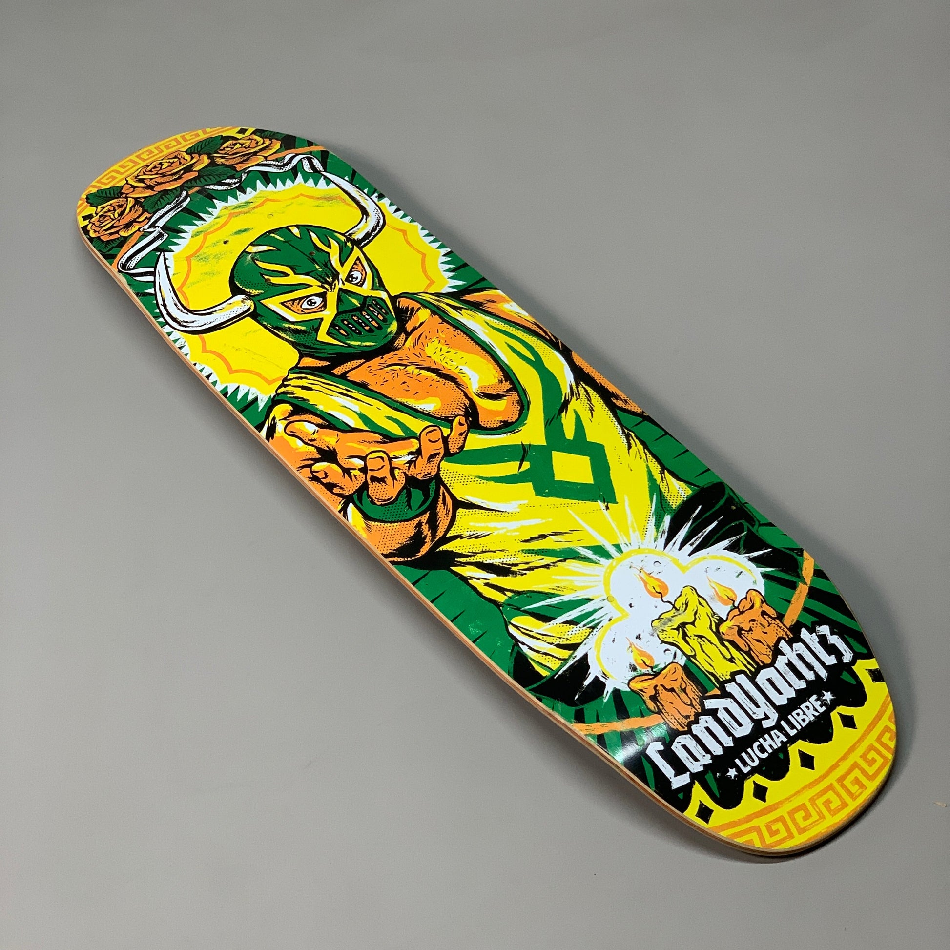 While the deck is new, it may have minor scuffs, adding character without compromising its quality. Whether you're a beginner or an experienced rider, the Land Yachtz Standard Deck in Lucha Libre is a reliable companion for your skateboarding adventures.