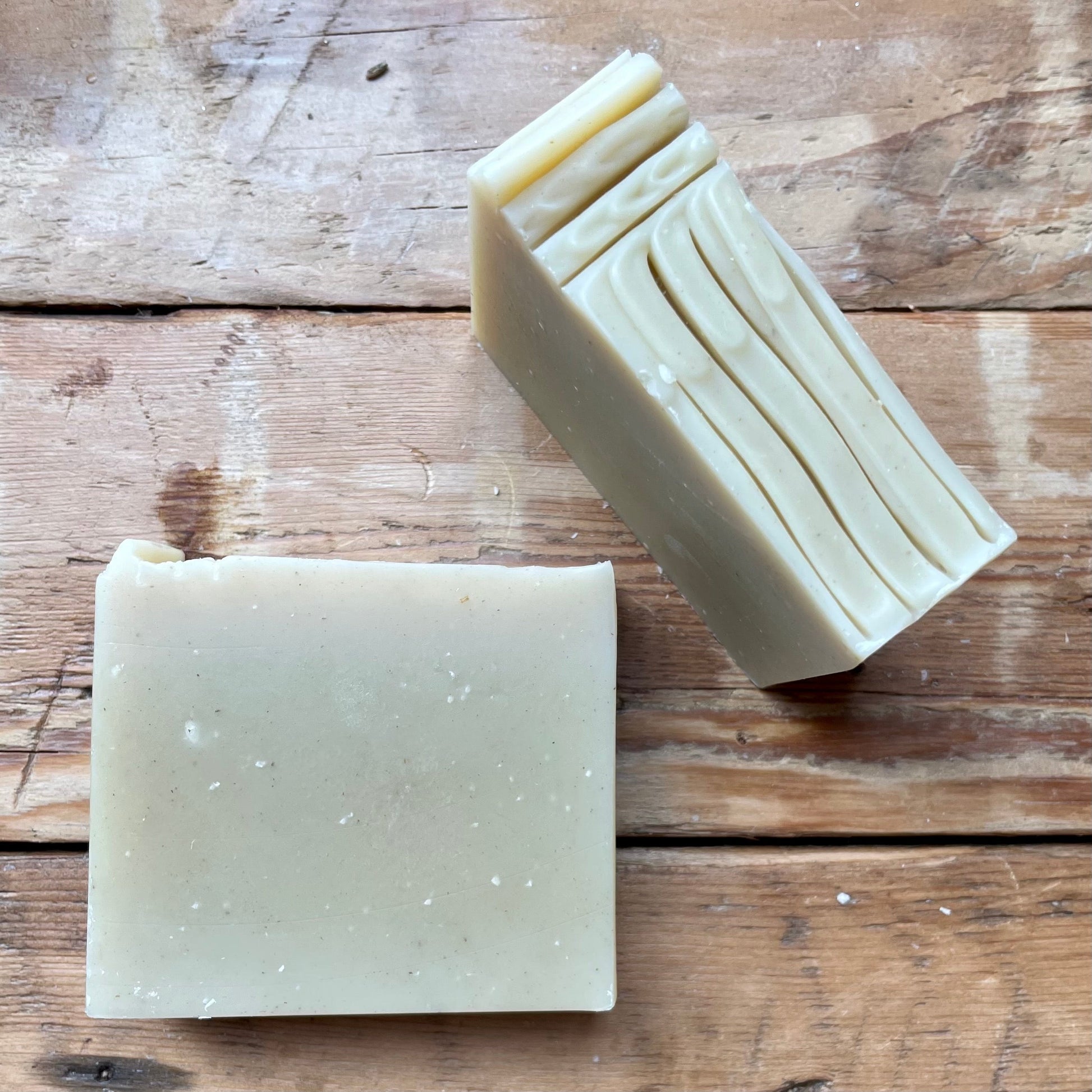 Ingredients: Saponified (Organic) Coconut Oil, (Organic) Olive Oil, Castor Oil, (Organic) Jojoba Oil, Avocado Oil, (Organic & Fair Trade) Cocoa Butter, Essential Oils, Stinging Nettle Leaf Powder, Love